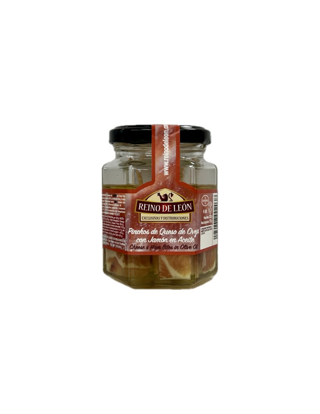 REINO DE LEÓN - SHEEP CHEESE SPICES WITH OILED HAM 6 units - 150gs - Glass jar 220 grams net - 110 grams drained.