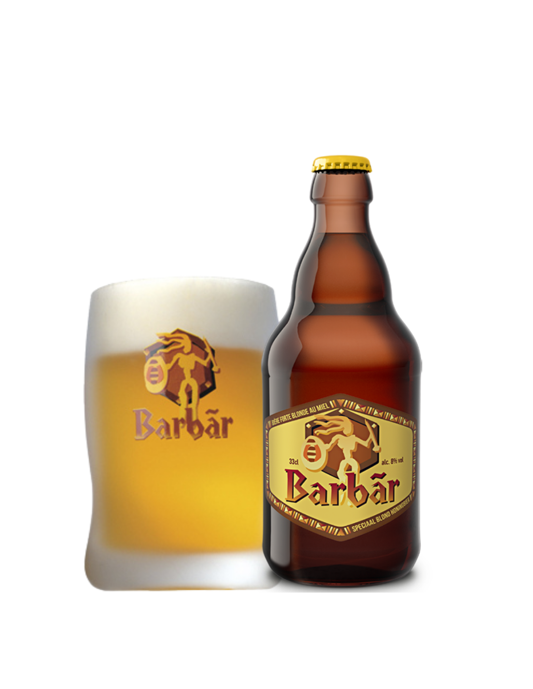 Descripción de la cerveza: Una cerveza de miel dorada que tiene un logo bárbaro en su etiqueta. Durante el proceso de fermentación, se añade miel al trigo malteado y al lúpulo, dándole un sabor más dulce y rico. Barbar ganó el premio de plata European Beer Star 2010 a la mejor cerveza especial con miel.