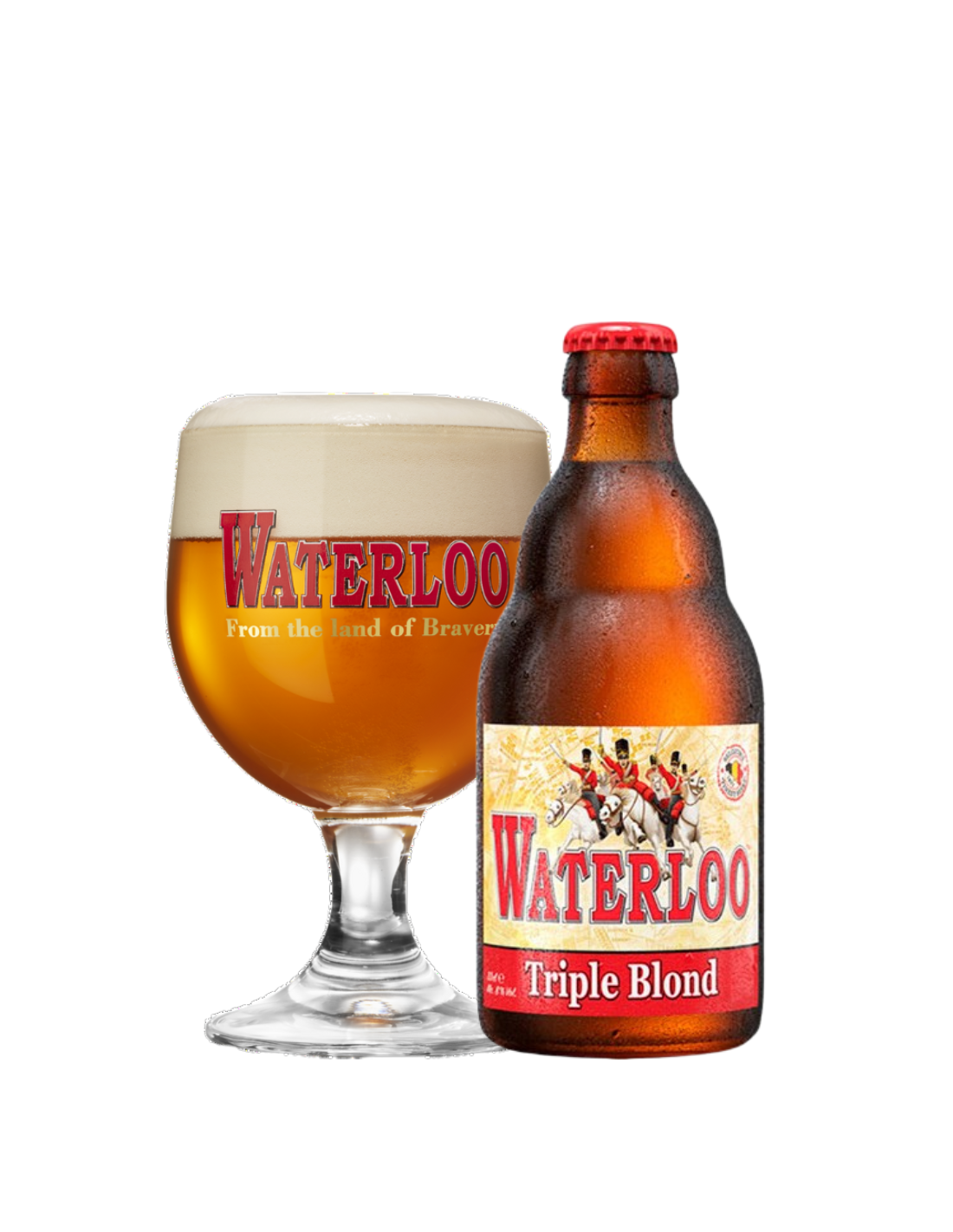 Auténtica cerveza belga de alta fermentación con una rica herencia. Después de varias semanas de fermentación, la fermentación secundaria en botella añade el sutil toque final al aroma. De color amarillo dorado brillante, burbuja muy fina y espuma espesa y cremosa. La primera impresión en nariz es fresca y a levadura. Aromas vivos y afrutados acompañados de delicadas y refinadas notas de lúpulo. El bouquet se complementa con toques de manzana verde y tila. Los sabores puros iniciales persisten en el paladar y están bien equilibrados. Con su textura suave, Waterloo Triple Blond revela la calidad de la malta y ofrece un final refrescante a lúpulo con un agradable amargor. En boca es flagrante y bien estructurado, con carácter y cuerpo, y con un postgusto agradable: un perfecto equilibrio entre lúpulo y malta. Ideal con carne a la parrilla y patatas fritas.